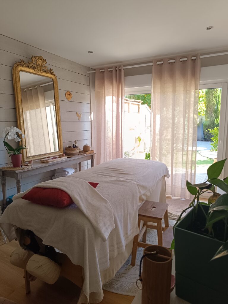 J’amène le matériel nécessaire (table de massage, huiles de massage…). Il faudra juste un endroit calme pour que vous puissiez profiter du massage ou de l’atelier en toute quiétude.